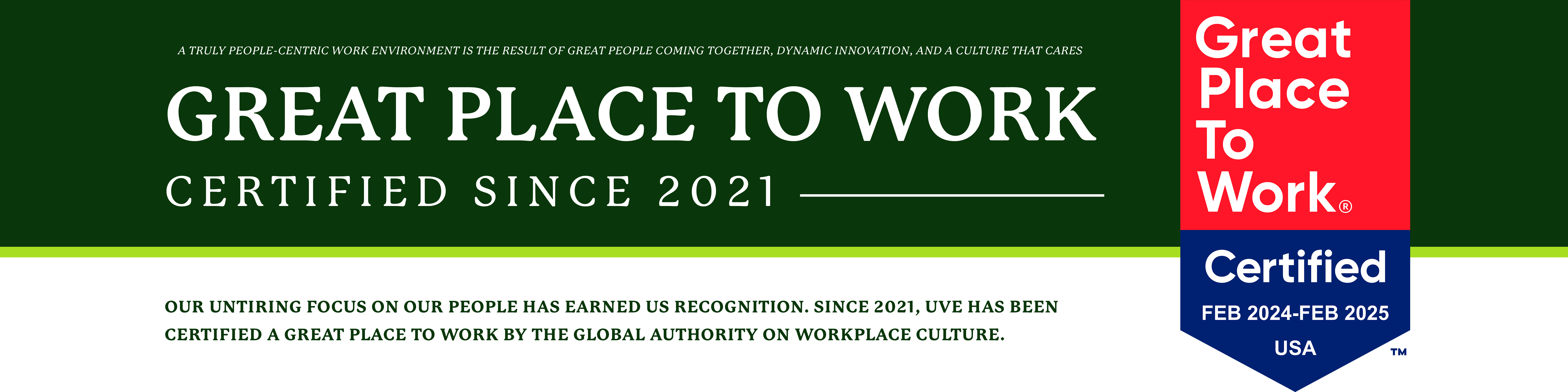 Our people are the driver of our continued success at UVE. We cannot achieve our mission unless our employees are equipped with the tools to generate their best work. We invest in and support our employees because when our employees prosper as people, we succeed as a company.